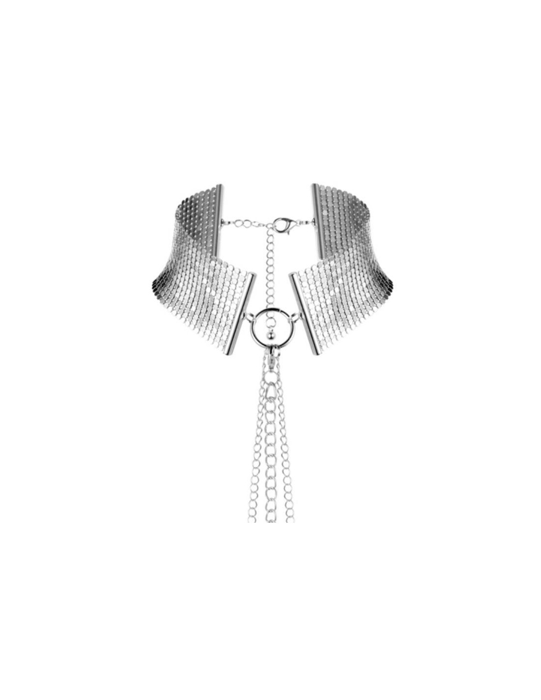 Mit diesem verstellbaren Metallgitterkragen und der kühlenden Metallkette, die Rumpf und Taille als Kettengürtel umhüllt, können Sie Ihrer Fantasie freien Lauf lassen und sich dem Vergnügen hingeben. Ein leicht zu tragender Kragen für jeden Anlass und ein suggestives Schlafzimmerzubehör für Soft-Bondage-Spiele.