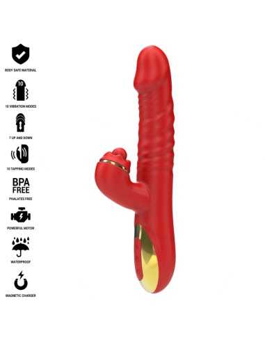 Entdecken Sie grenzenloses Vergnügen mit THALIA , dem multifunktionalen Vibrator, der Vibration, Stoßen und Stimulation gleichzeitig kombiniert. Dieses hochmoderne Spielzeug wurde für diejenigen entwickelt, die intensivere Empfindungen erleben möchten, und verspricht Ihnen Ekstase auf einem Niveau, das Sie sich nie hätten vorstellen können.