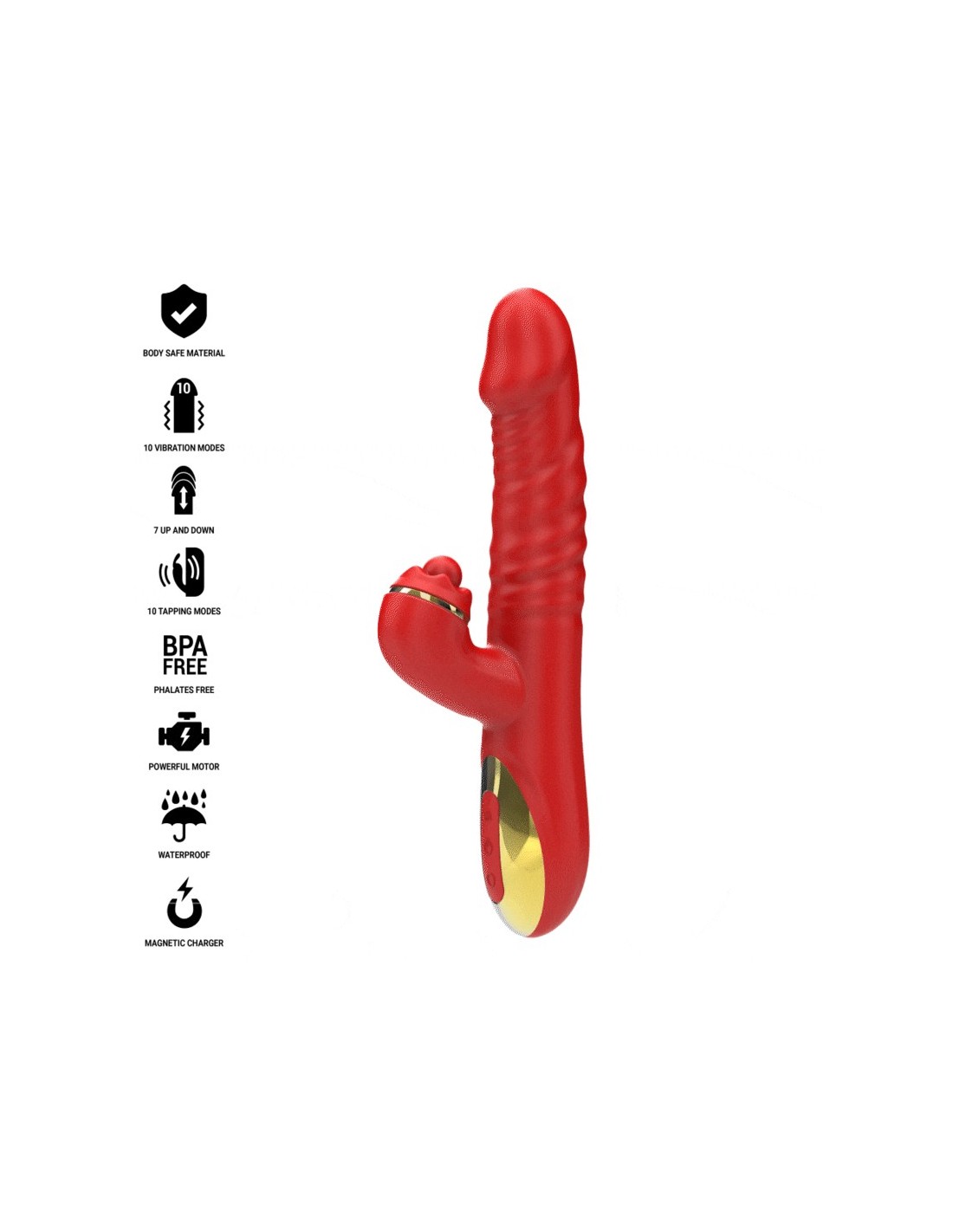 Dieser Vibrator ist perfekt für Anfänger, die neue Empfindungen entdecken möchten, und Experten, die ihr Vergnügen auf die nächste Stufe heben möchten. Seine einzigartige Kombination aus Vibration, Stoßen und Stimulation garantiert intensive und tiefe Orgasmen und verwandelt Ihre intimen Momente in ein unvergessliches Erlebnis.