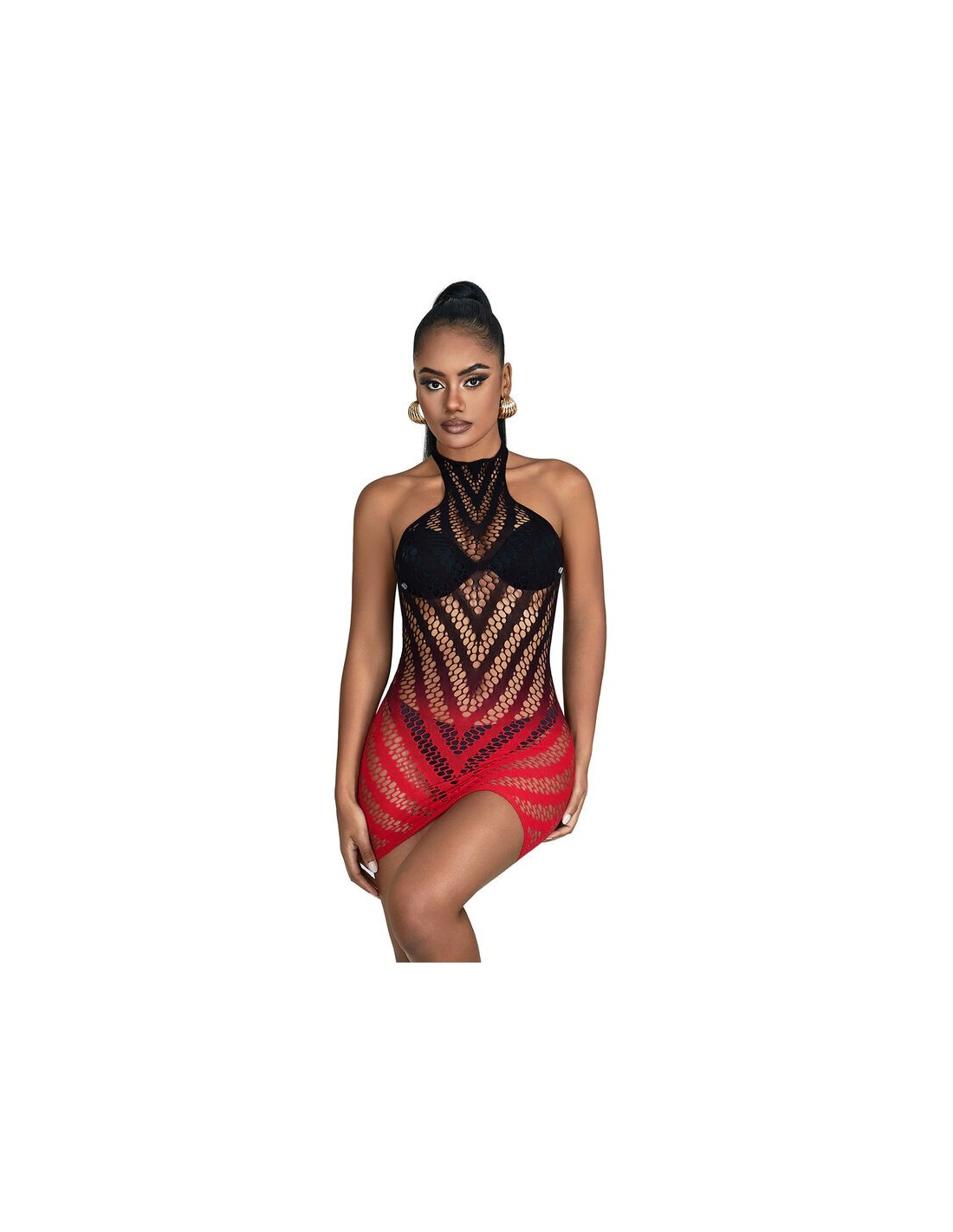 Subblime 952242 Roter Und Schwarzer Kleid Aus Elastischem Netz Mit Abgeschnittenem Degrad Eine