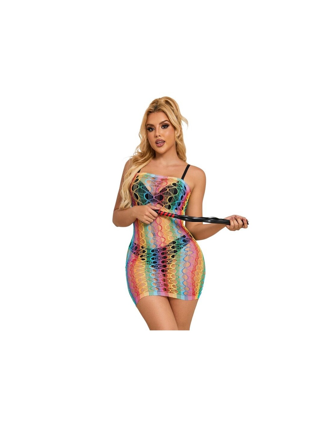 Subblime Rainbow Bare Shoulder Fishnet Dress One Size