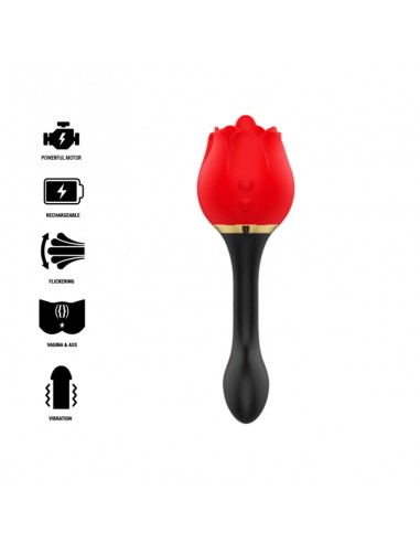 Ways to play; Place the silicone rose securely in the palm of your hand. Place Mia DOUBLE PLEASURE on your clitoris or other erogenous zones and enjoy the deep vibrations. Explore different environments and positions to tailor your experience. It is perfect to stimulate the clitoris and also use the vibrating handle for the anal area. Double and powerful stimulation.
