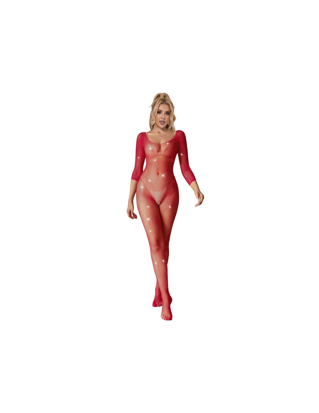 Subblime 952419 Bodystocking De Rejilla Con Diamantes Manga Larga Rojo Talla Única