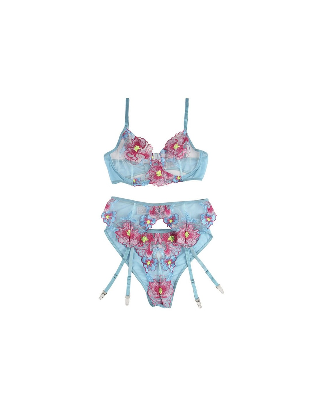 Subblime 954116 Sujetador + Panties Con Liguero Diseño Floral Azul L/Xl