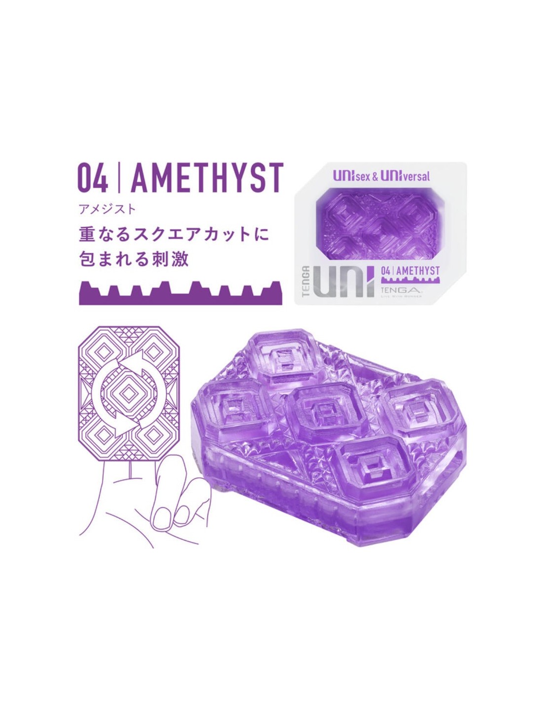AMETHYST: Estimulación envuelta en cortes cuadrados superpuestos.Disfruta de la estimulación de ser envuelto y succionado por detalles cuadrados con tamaños superpuestos.
