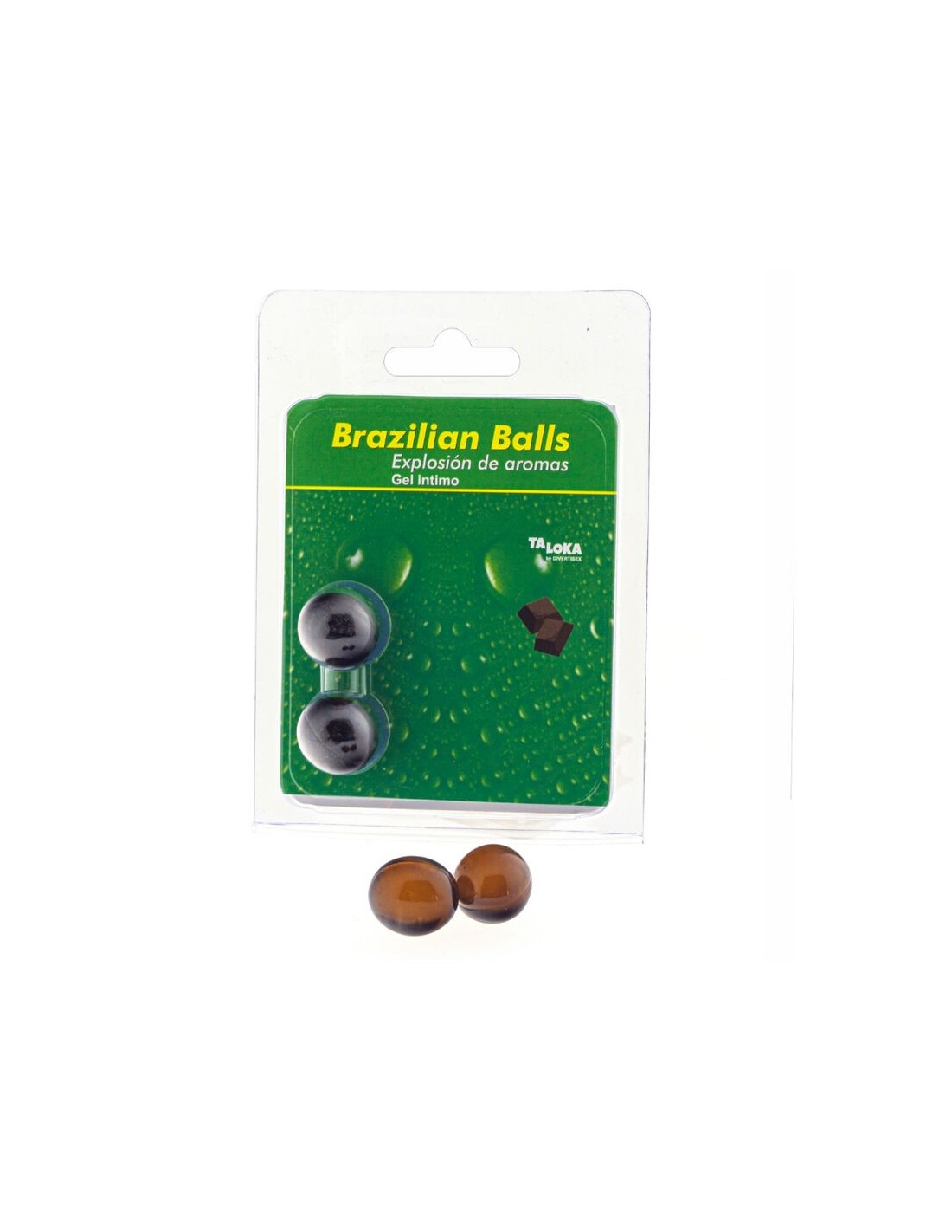 2 boules brésiliennes avec LUBRIFIANT QUI OFFRENT UNE EXPLOSION DE PLAISIR AVEC UN MÉLANGE DE SENSATIONS EXCITANTES AVEC UN ARÔME PASSIONNÉ DE CHOCOLAT.