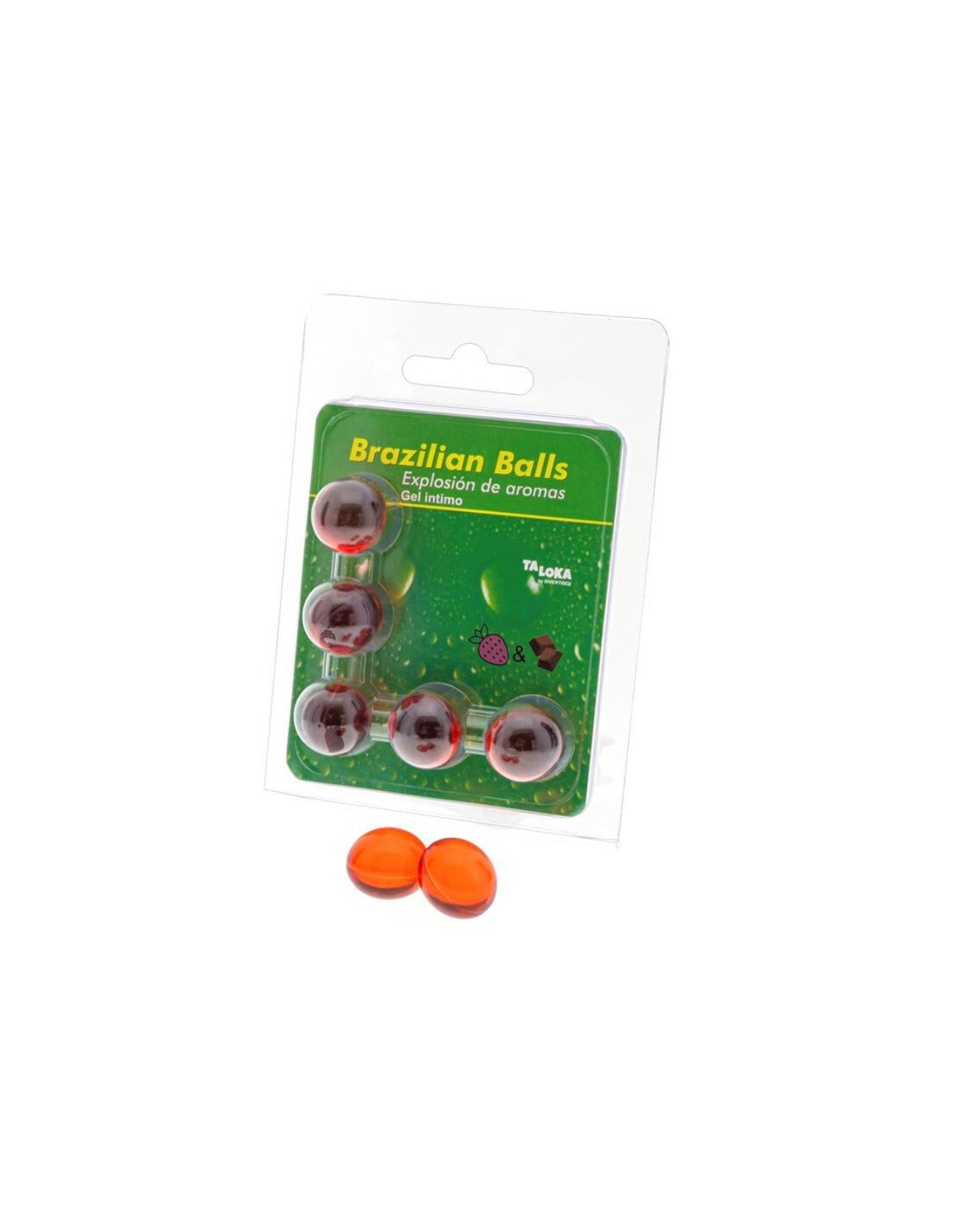 5 boules brésiliennes avec LUBRIFIANT QUI OFFRENT UNE EXPLOSION DE PLAISIR AVEC UN MÉLANGE DE SENSATIONS EXCITANTES AVEC UN ARÔME PASSIONNÉ DE FRAISE ET DE CHOCOLAT.