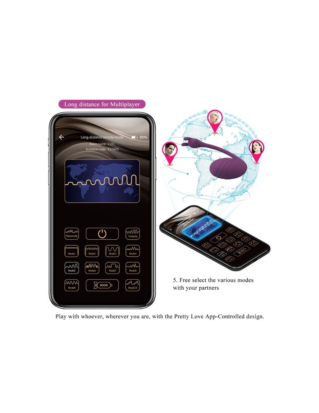 Dall'interno o dall'esterno della casa, lascia che questo uovo dell'amore ricaricabile controllato dall'app Pretty Love con 12 funzioni ti dia tranquillità. vita alla tua vita sessuale.