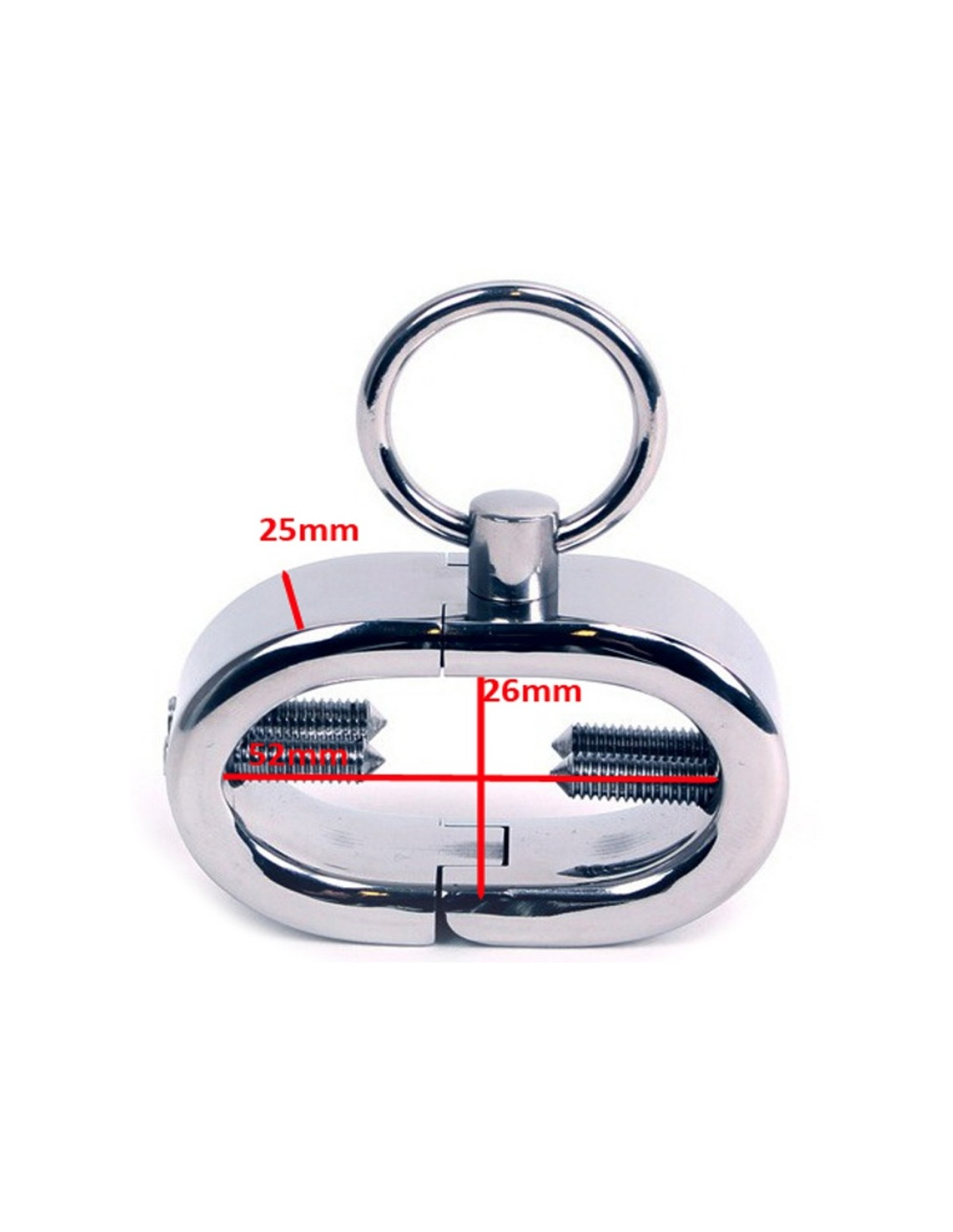 Il braccialetto ovale per testicoli di denti di Kalis è dotato di un O ring incorporato in modo da poter collegare cavi o incorporare altri sistemi di ritenuta per aumentare il rischio. Fissare saldamente questo dispositivo in posizione con il bullone a brugola incluso: ora non c'è più scampo senza la chiave!