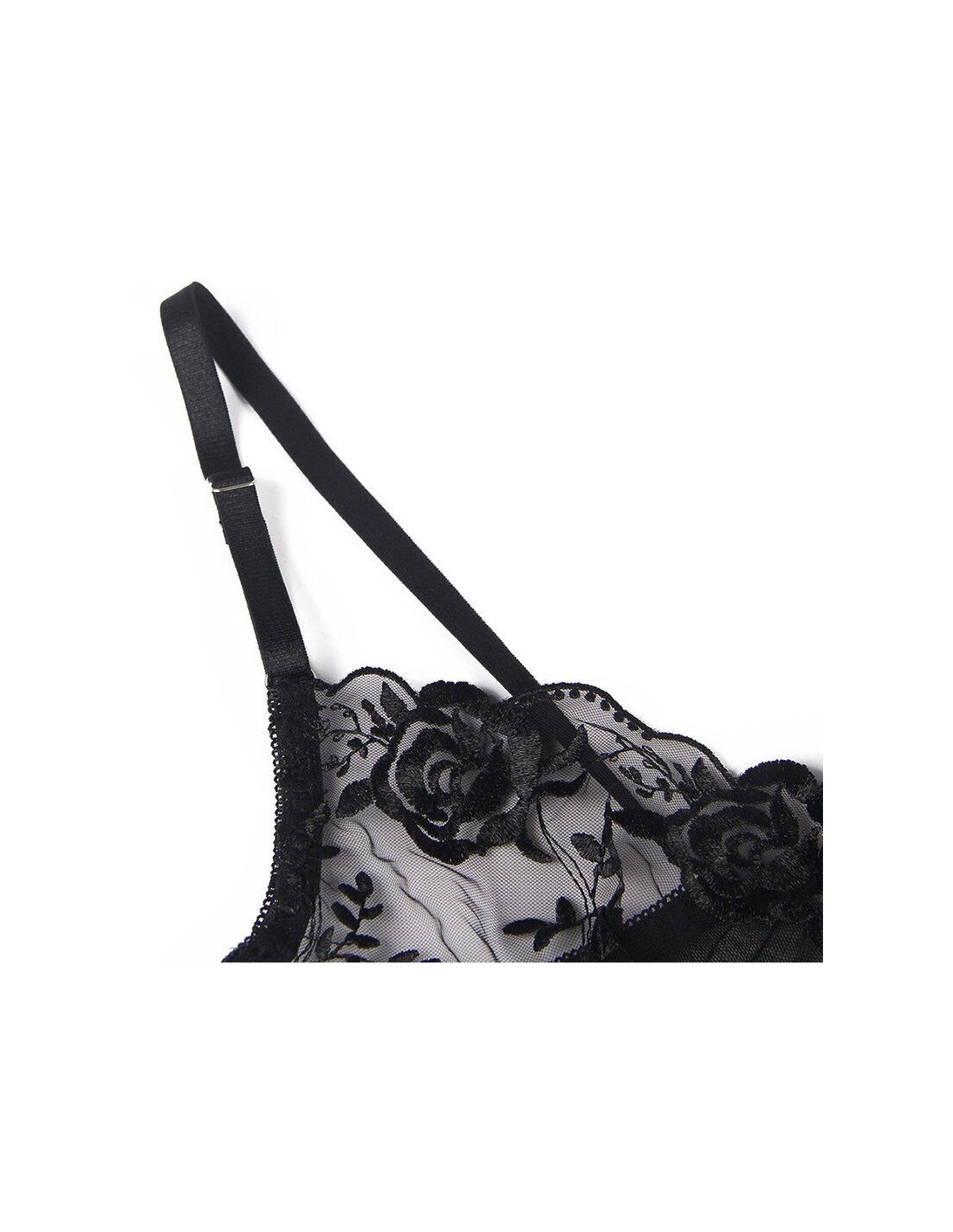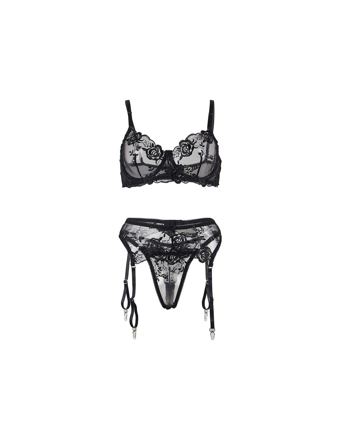 Subblime Set Pezzi Reggiseno + Perizoma + Giarrettiera Stampa Floreale Nero S/M
