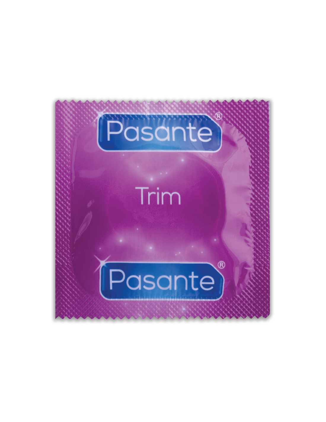 I preservativi Pasante Trim offrono una larghezza più stretta per una vestibilità più piccola. Colore parallelo, liscio e naturale.