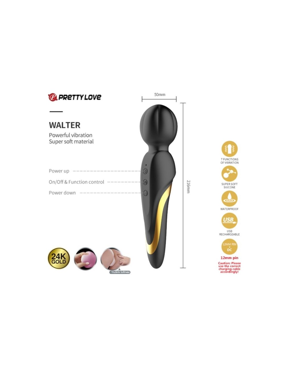 - Walter ? Bacchetta vibrante 7 funzioni Vibrazione 5 livelli di intensità Funzione memoria Bacchetta USB ricaricabile in silicone super morbido Diametro testa: 5 cm