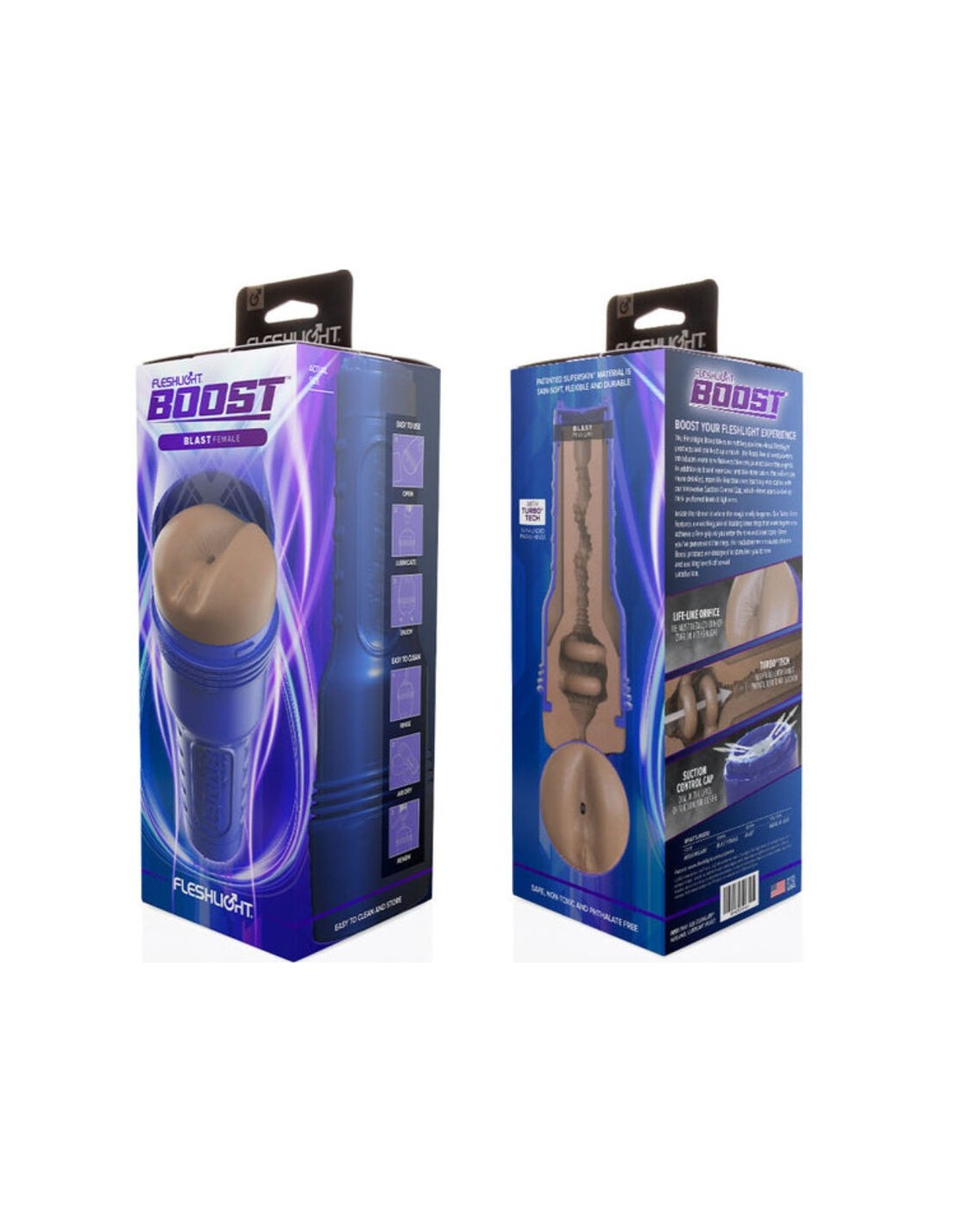 Você nunca EXPLODEU uma bunda tão real. Empurre seu pênis para dentro do Fleshlight anal mais apertado e realista de todos os tempos. Os anéis flutuantes "Turbo Tech" do Boost Blast abraçam confortavelmente seu membro na entrada, garantindo uma sensação confortável em todos os momentos.