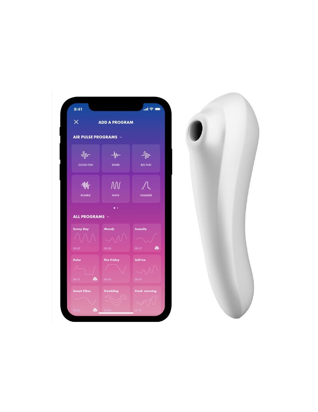 - Variedade interminável de programas com o App Satisfyer (também pode ser usado sem o app)