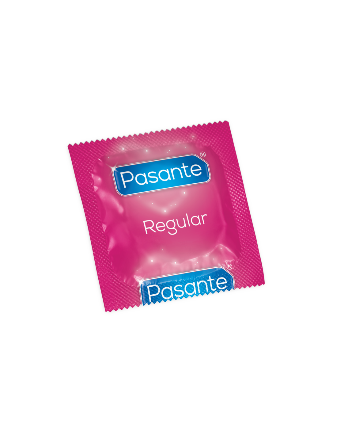 Os preservativos Pasante Regular têm um formato ligeiramente cônico para uma sensação natural. Macio, de cor natural e com ponta em tetina.