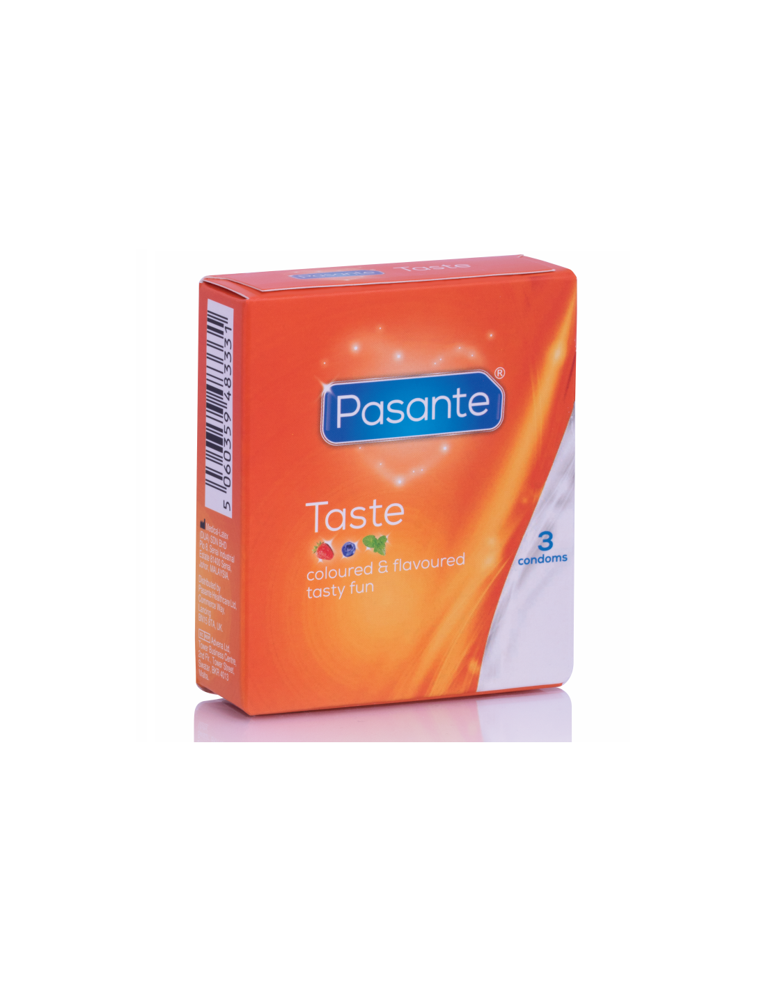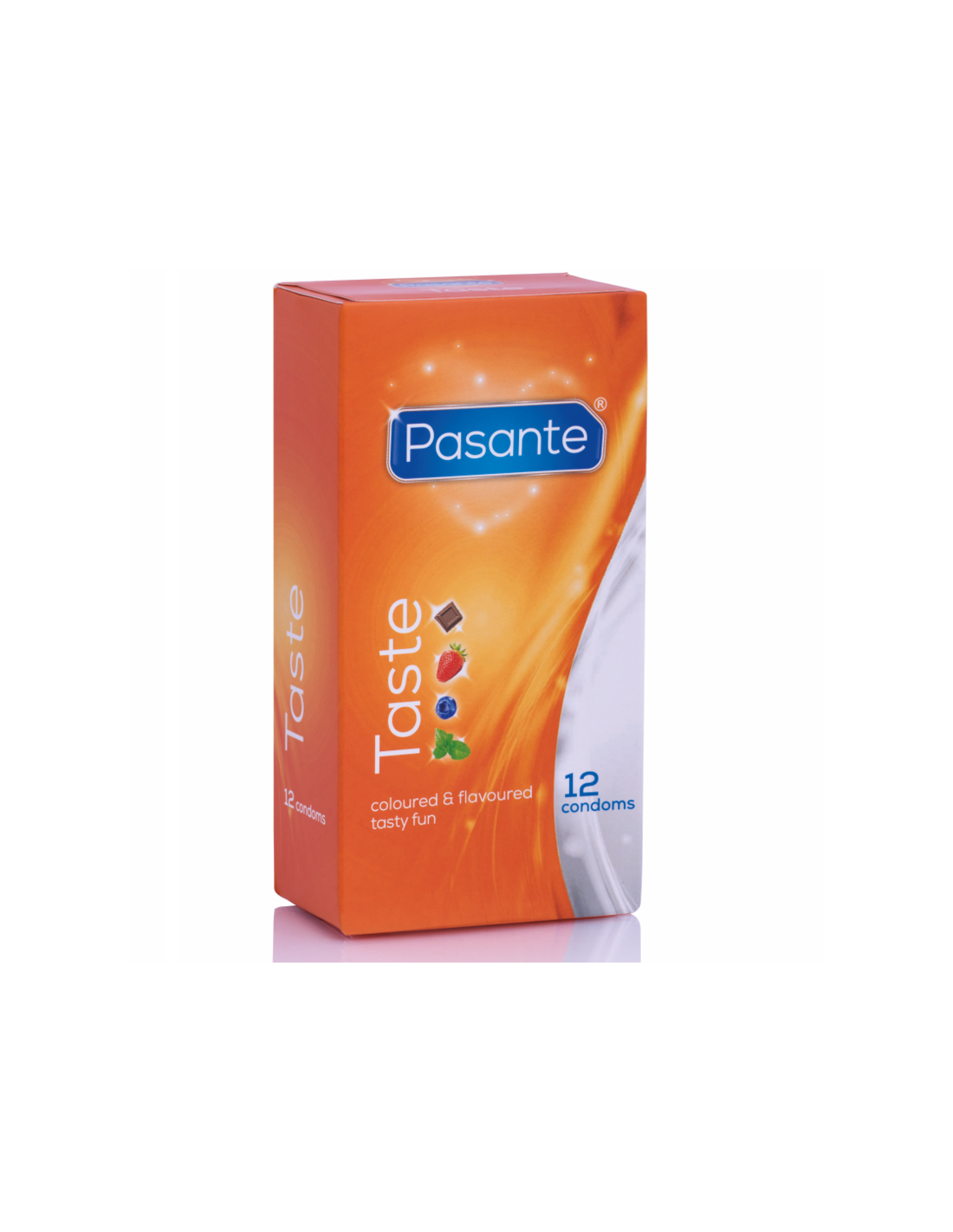 Pasante Taste são aromatizados e coloridos para uma diversão saborosa. Os sabores incluem Menta Fresca (verde), Morango (vermelho), Chocolate (marrom) e Mirtilo (azul). Macio,.